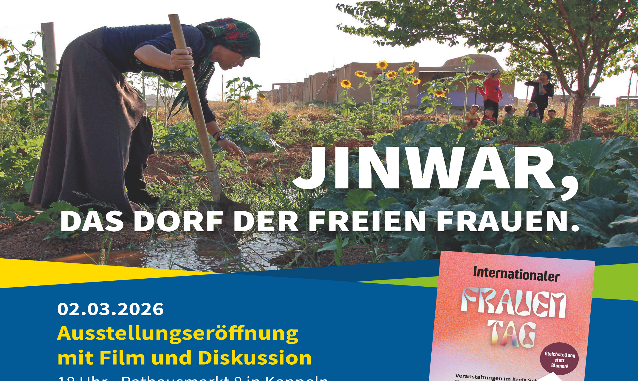 Das Plakat zur Ausstellung Jinwar, das Dorf der Frauen